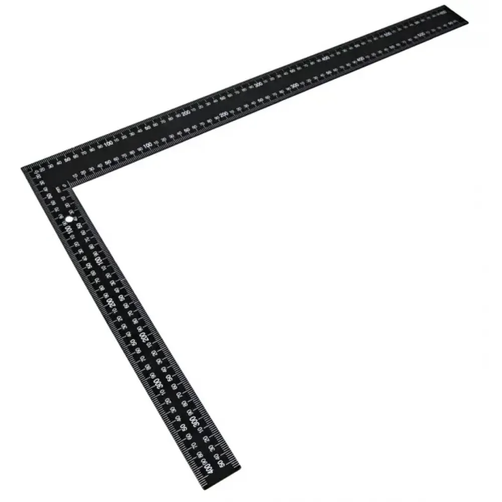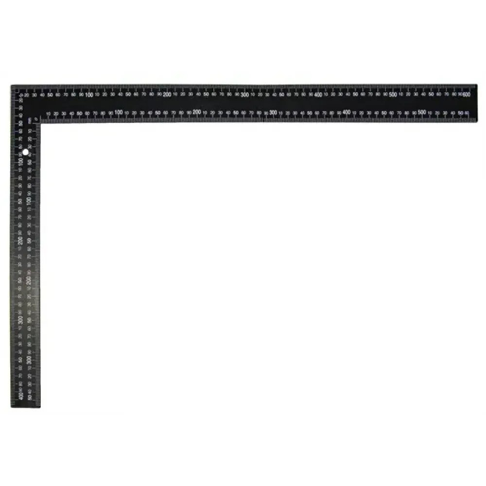 **Угольник** используется для работы с заготовками из металла и дерева. На поверхность нанесена разметка для высчитывания расстояния. Позволяет измерять углы в 45° и 90°. Отличается устойчивостью к внешним воздействиям, деформации и коррозии.