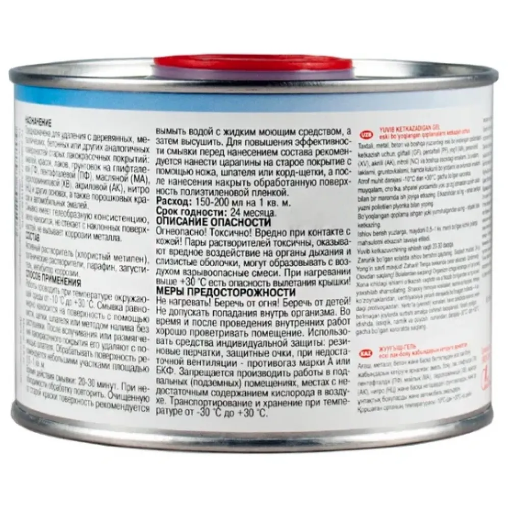 Предназначена для удаления с деревянных, металлических, бетонных или других аналогичных поверхностей старых лакокрасочных покрытий: эмалей, красок, лаков, грунтовок на глифталевой (ГФ), пентафталевой (ПФ), масляной (МА), перхлорвиниловой (ХВ), акриловой (АК), нитро (НЦ) и других основах, а также порошковых красок и автомобильных эмалей. Смывка имеет гелеобразную консистенцию, поэтому легко наносится и не стекает с наклонных поверхностей. Не вызывает коррозии металла.