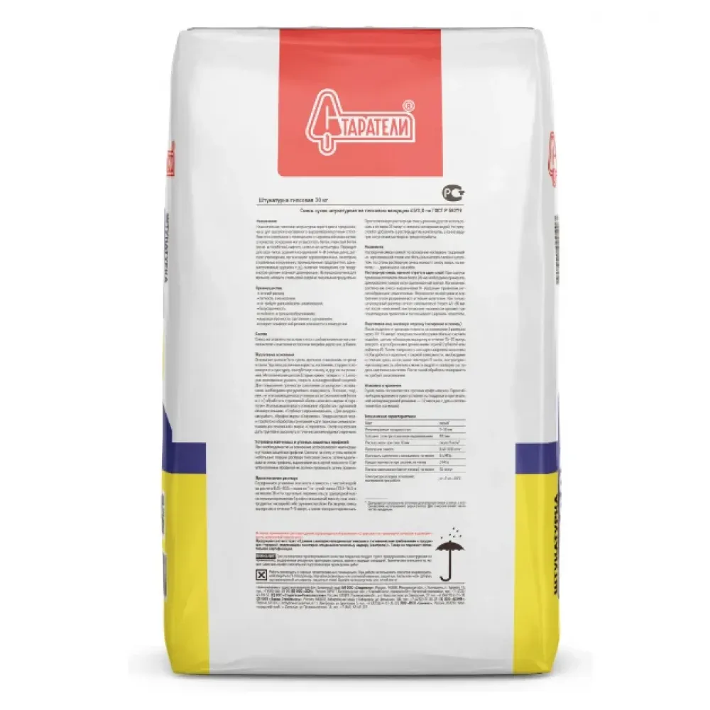 Технические характеристики Штукатурка Старатели гипс. 30кг